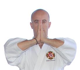 El saludo del Shorinji Kempo se llama GASSHO REI y se efectua con las manos juntas a la altura de la cara, sin inclinar el cuerpo, como puedes ver en la fotografía.